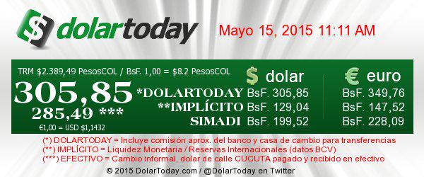 ¿A cuánto subirá el dólar SIMADI y Paralelo? una interrogante muy común en estos días cuando el dólar paralelo a alcanzado un máximo de Bsf/$ 305,85 y en efectivo Bsf/$ 285,49 según los medios especializados en hacerle seguimiento al dolar paralelo.